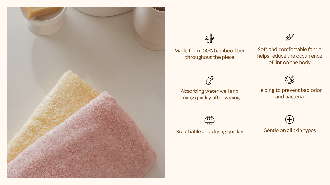 Jviva - ผ้าขนหนูใยไผ่100% (Natural Bamboo Towel) เช็ดตัว ไซส์ S (24x48 นิ้ว)
