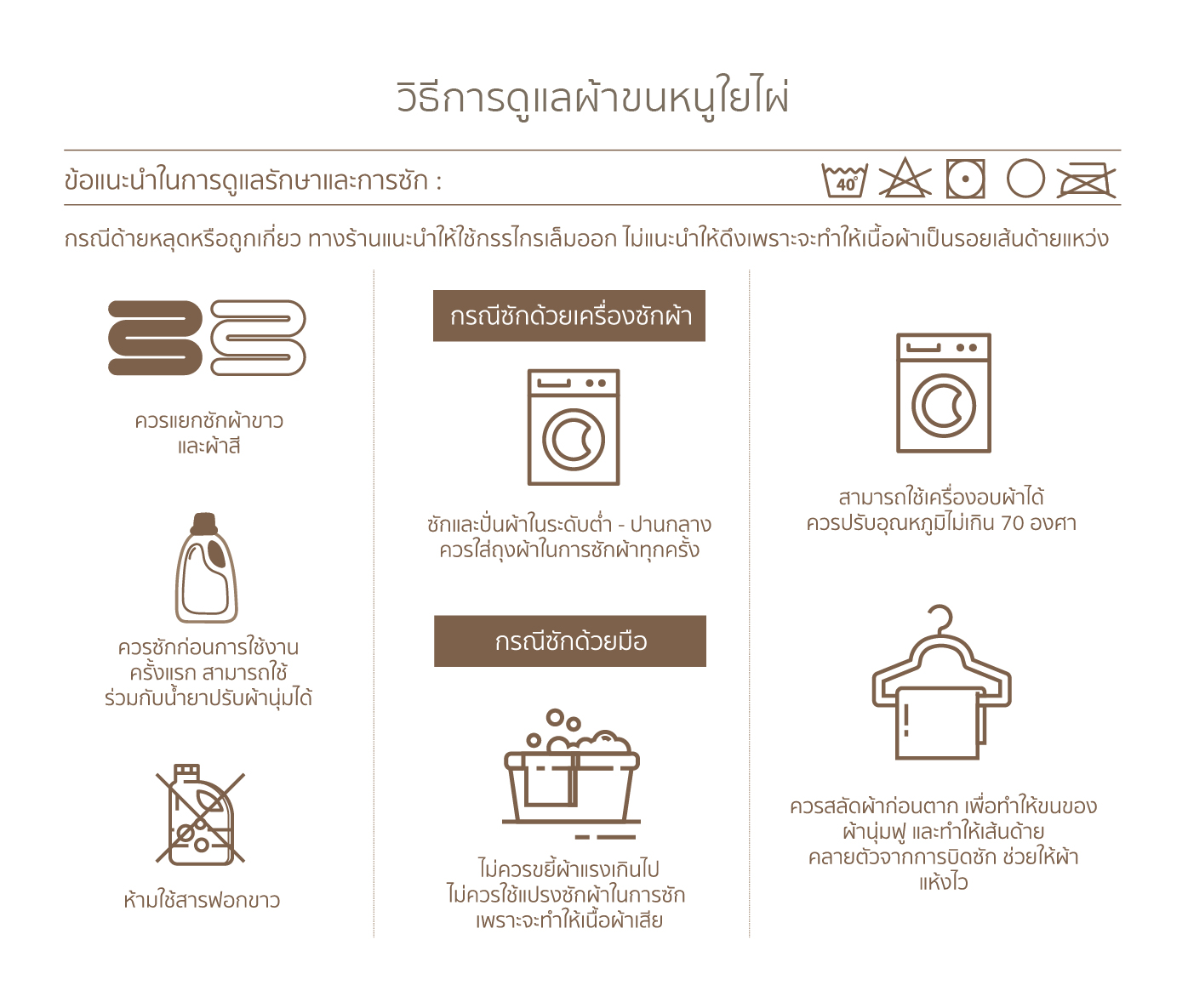 ข้อแนะนำในการดูแลรักษาและการซัก
