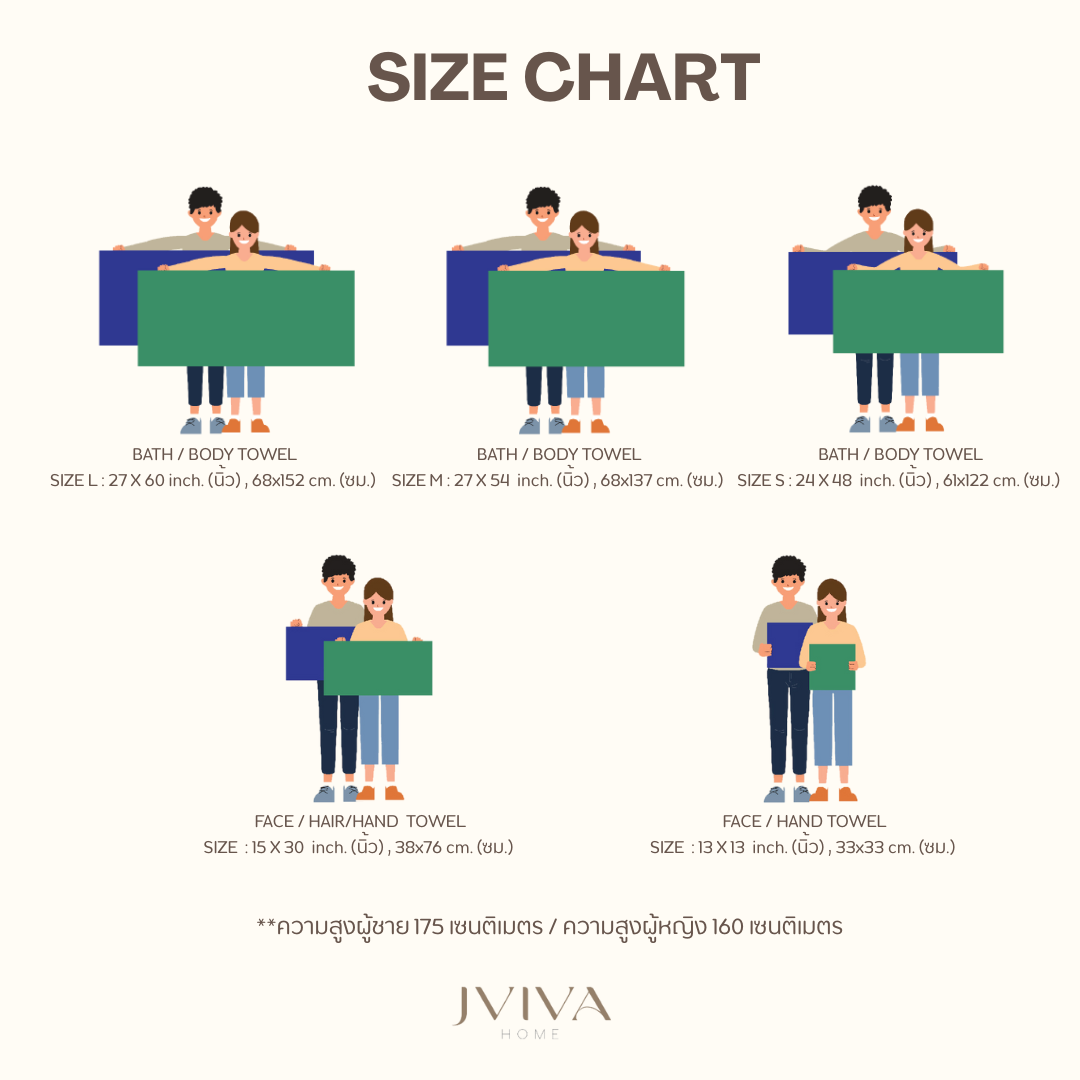 - ผ้าเช็ดตัวใยไผ่ ไซส์ M ขนาด 27x54 นิ้ว = 68x137 ซม. (เหมาะสำหรับผู้หญิงหรือผู้ชายที่รูปร่างเล็ก)