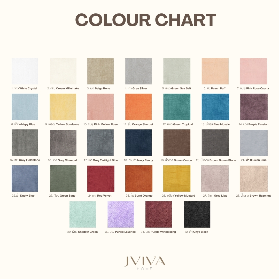 ผ้าขนหนูใยไผ่ 100% มี 5 ขนาดและมีสีให้เลือกถึง 32 สี