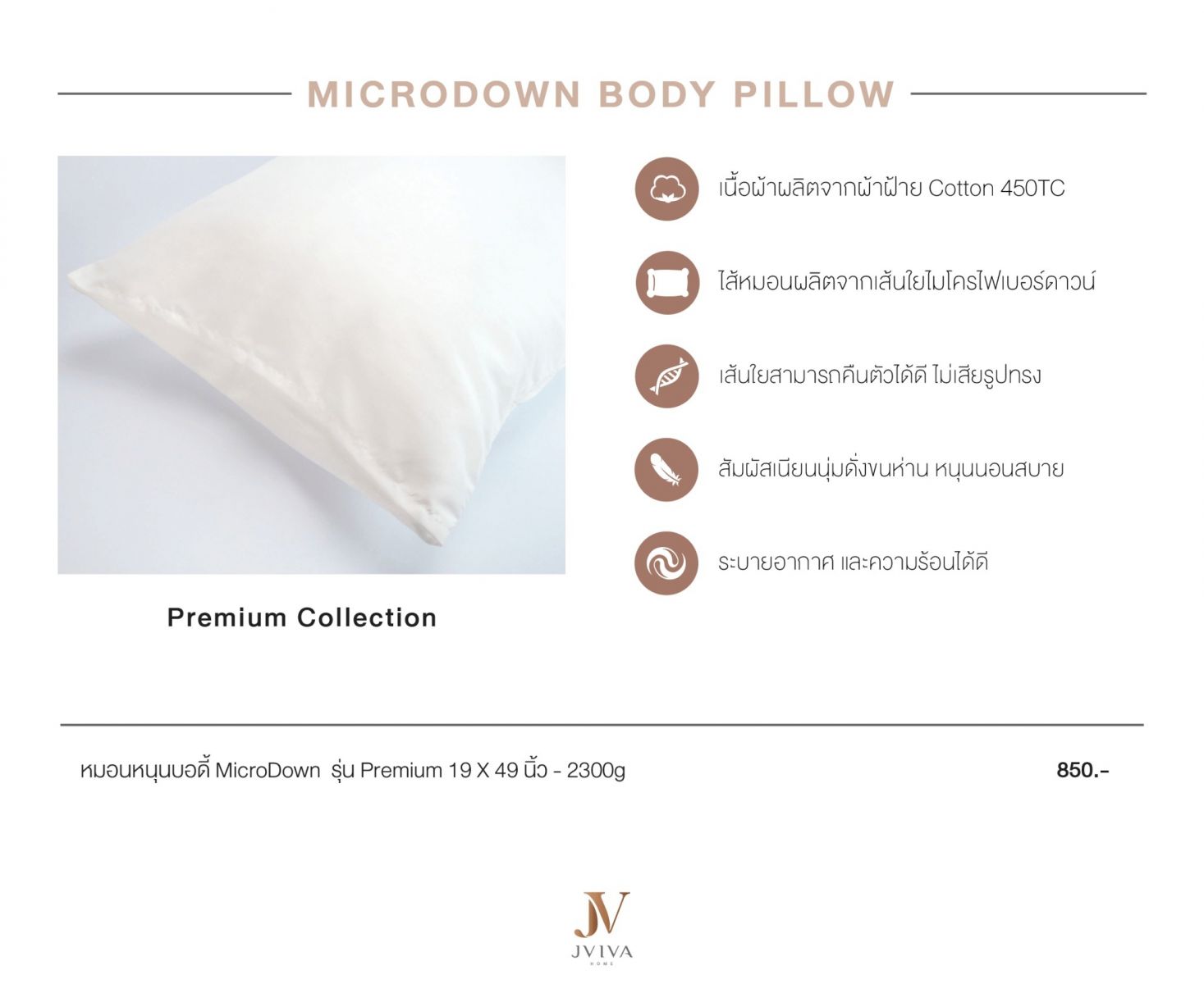หมอนหนุนบอดี้ - ใย Micro Down รุ่น Premium ขนาด 19" X 49"