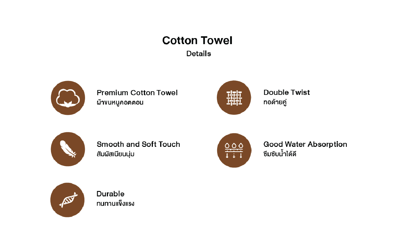 - ให้ความรู้สึก, สัมผัส และคุณภาพระดับผ้าขนหนูโรงแรม 5ดาว